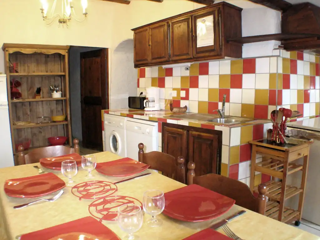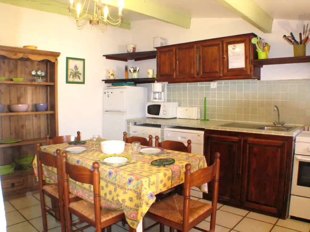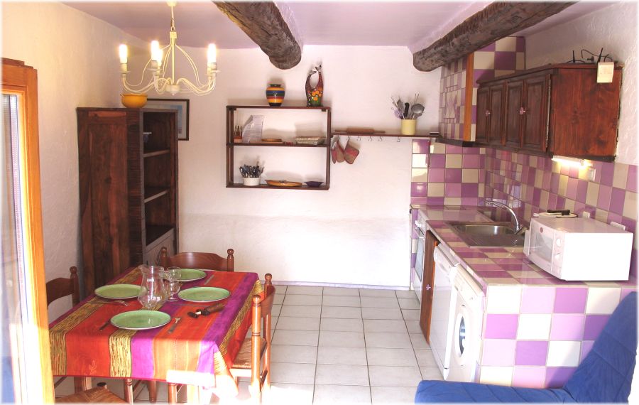 1 pièce entrée/cuisine avec: Table 6 pers, lave-linge, lave-vaisselle, gazinière 4 feux avec four,hotte,micro-onde, fer vapeur, cafetière électrique, etc...