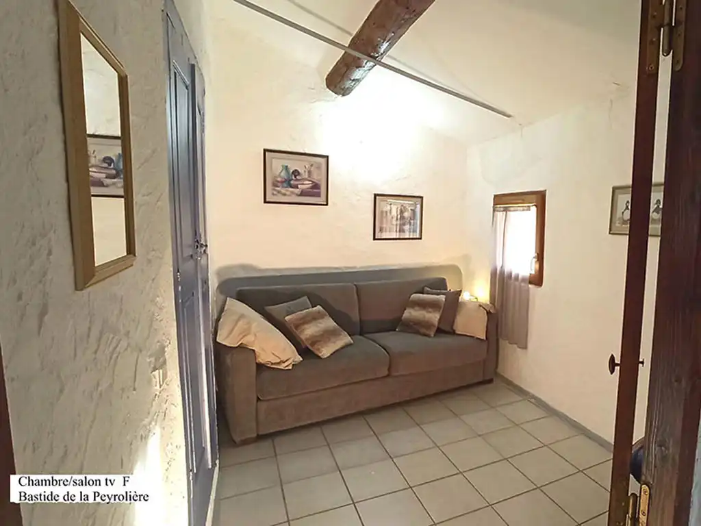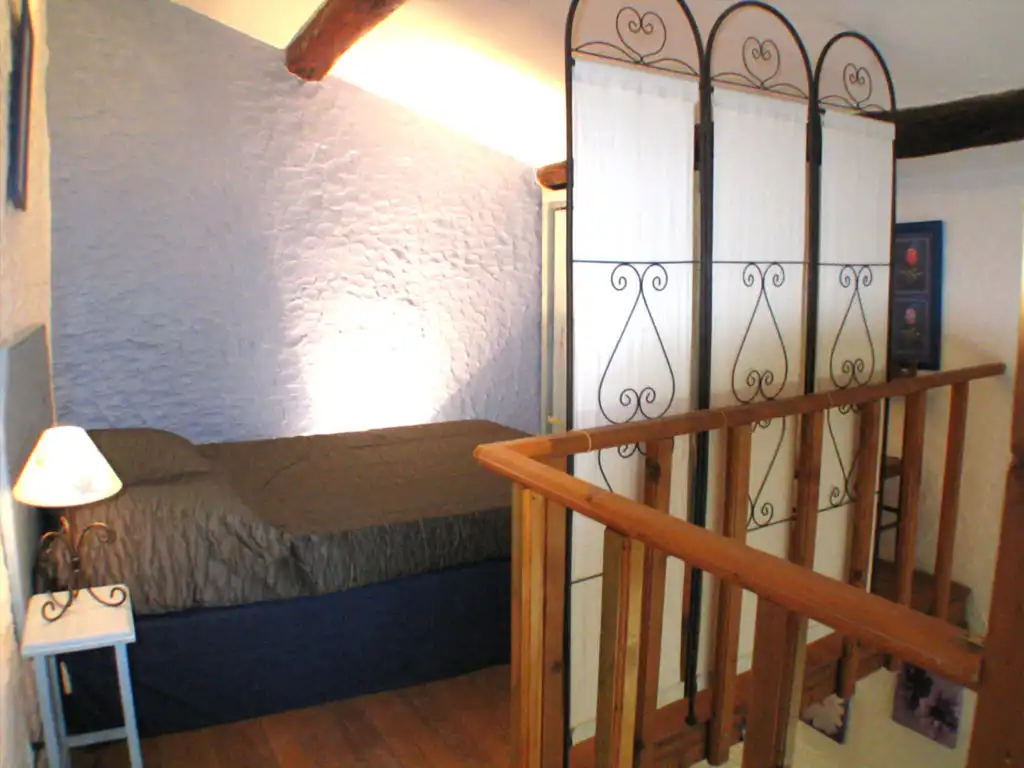 1 salon avec TV couleur et chambre en mezzanine équipée d'un lit 140x190cm