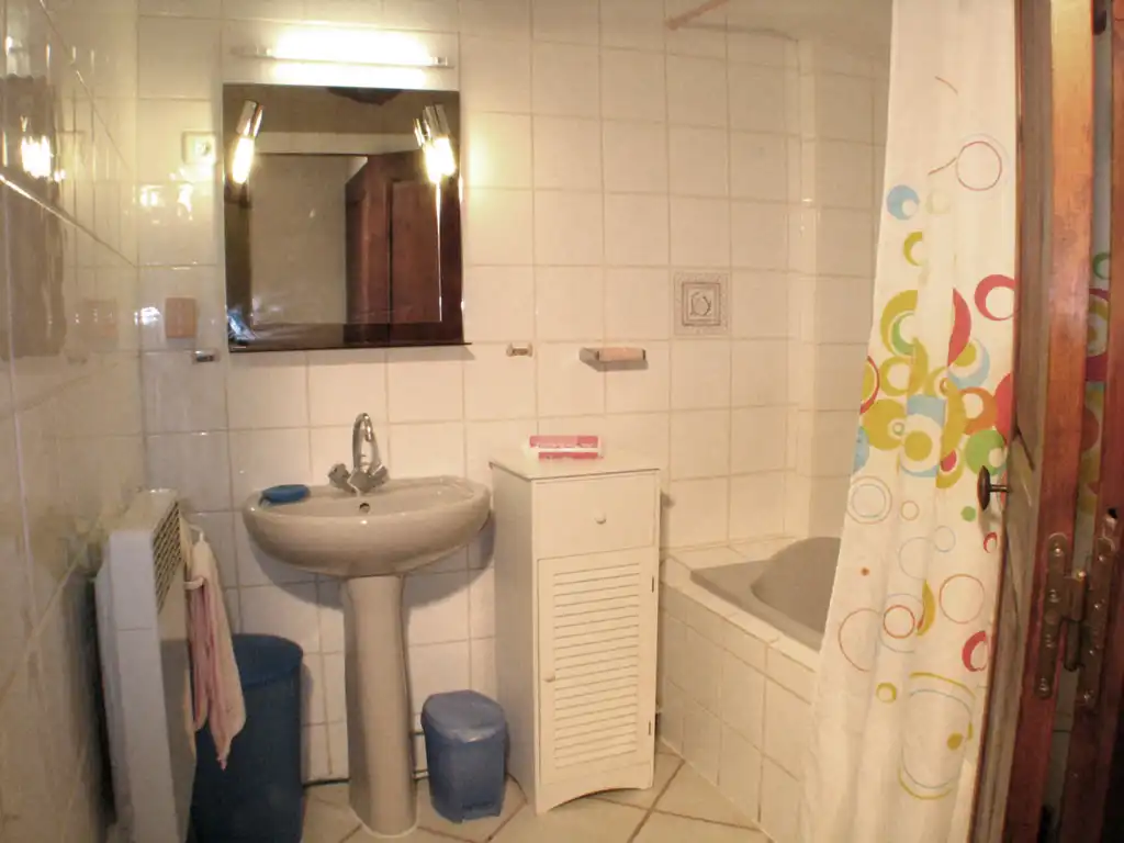1 salle de bain avec baignoire/douche , lavabo, 1wc