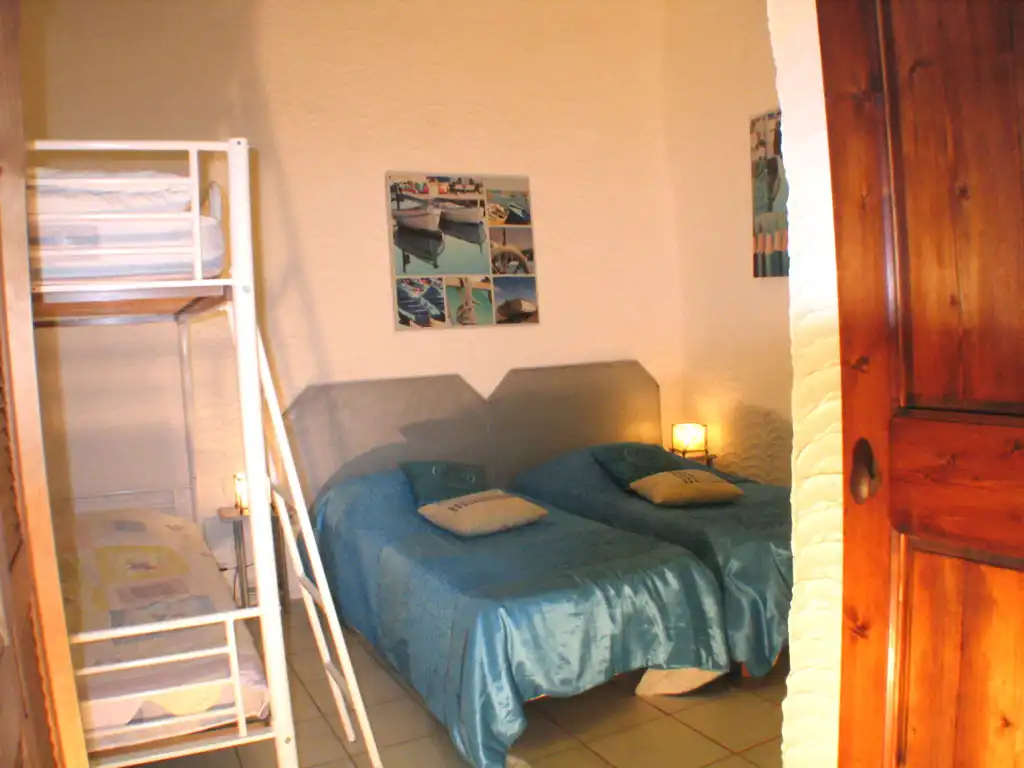 1 chambre avec 1 lit en 160x190cm séparable en 2 couchages individuels et 1 ensemble lits superposés en 90x190cm