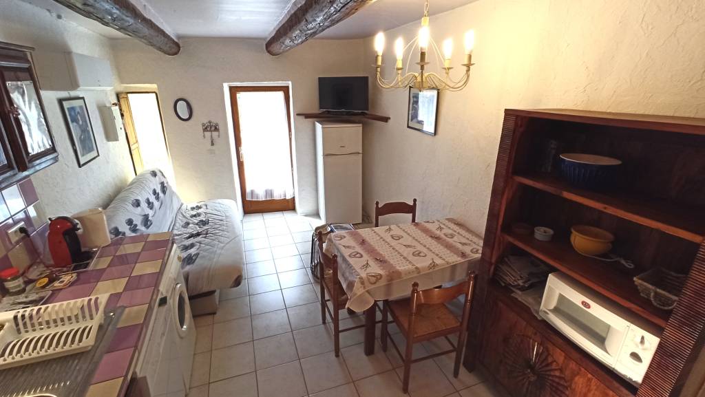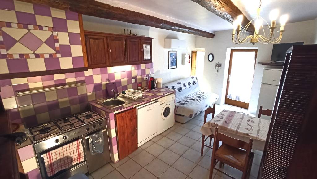 1 pièce entrée/cuisine avec: Table 4 pers, lave-linge, lave-vaisselle, gazinière 4 feux avec four,hotte,micro-onde, fer vapeur, cafetière électrique, etc...